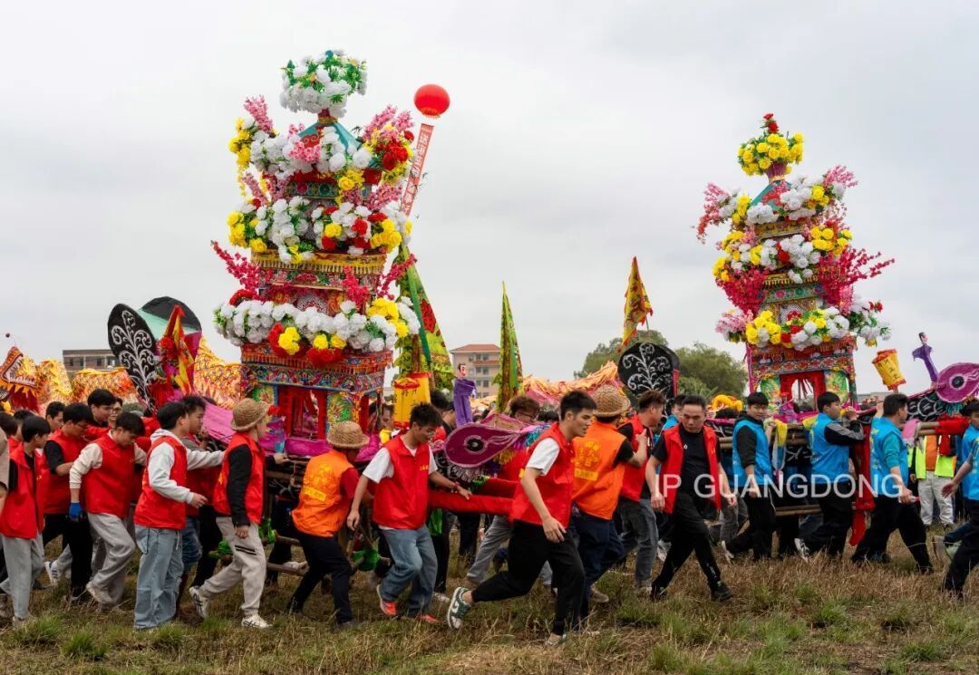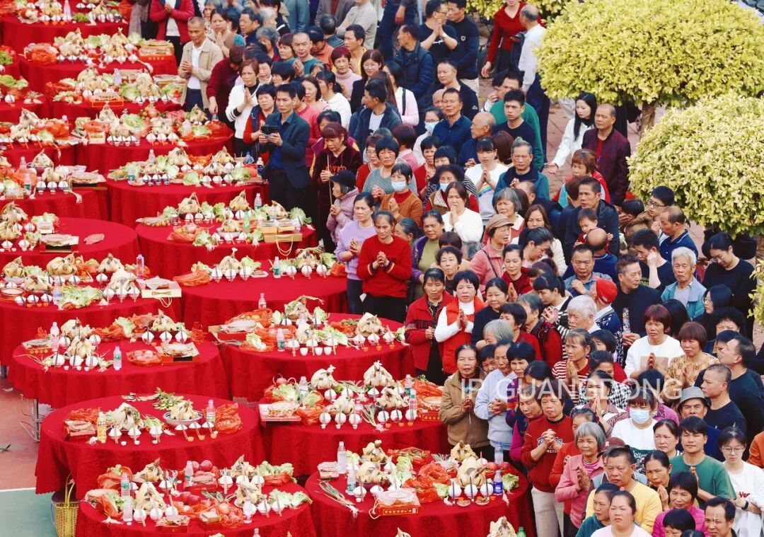 不仅好吃,“年例”也好“睇”。游神、打醮祈求人寿年丰;挂花灯、游飘色、舞狮舞龙、放鞭炮营造欢快氛围;做大戏、放烟花娱乐通宵……各类民俗活动精彩纷呈。