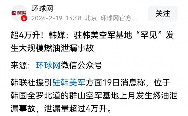 突发特讯!美空军在韩国发生事故,战斗机燃油突发大规模泄露。